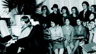 Clases de piano en la Cívica, asociación feminista creada por María Lejarraga en 1932.