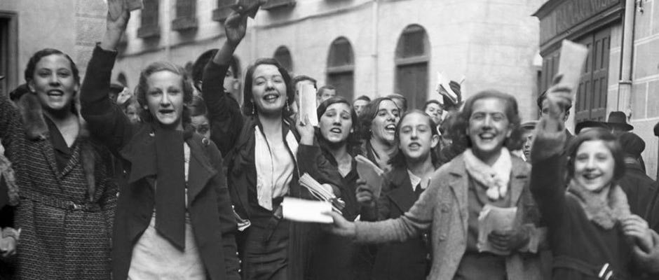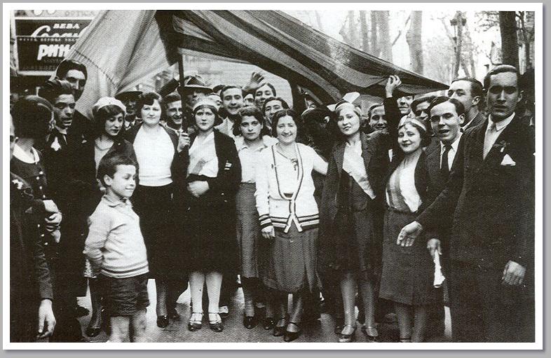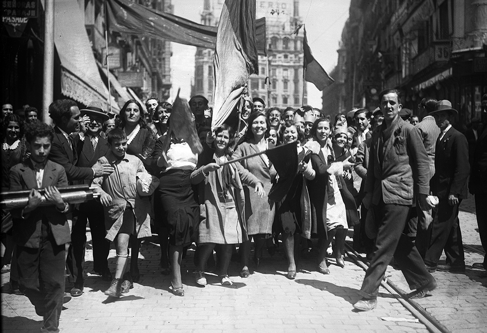 Celebración en las calles tras proclamarse la República el 14 de Abril 1931.