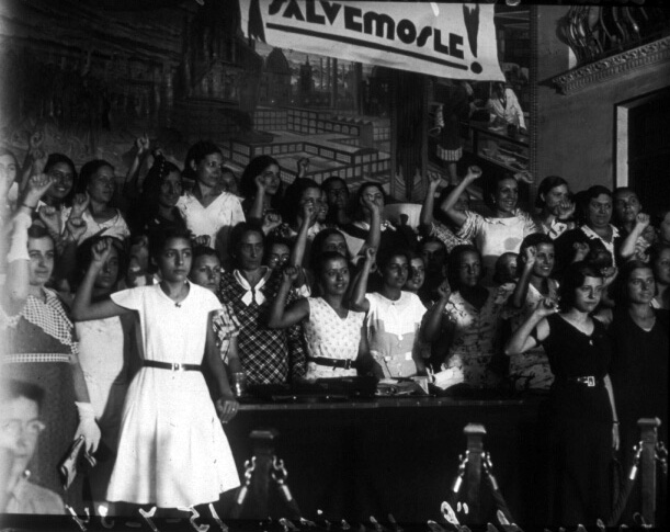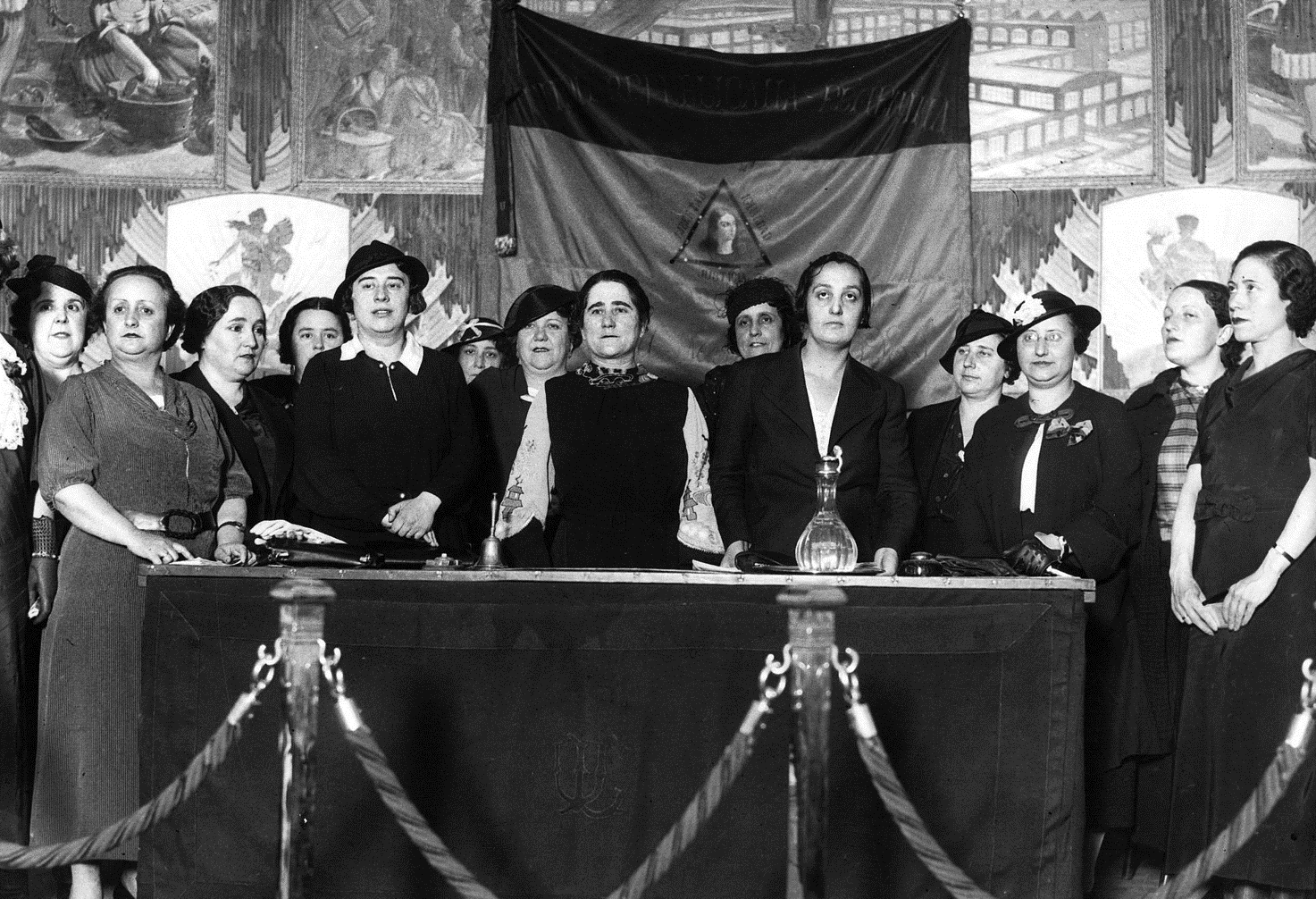 Primer congreso de Asociación de Mujeres Antifascistas AMA celebrado en julio de 1934 donde eligen a Dolores Ibarruri como presidenta. Ama antepuso la lucha antifascista por delante de cualquier objetivo emancipatorio para las mujeres, siguiendo las directrices marxistas según las cuales la liberación de la mujer siempre venía después.